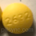 The yellow pill with a v 2632 on it is cyclobenzaprine hydrochloride 10mg, which is a muscle relaxer. that is correct, it is manufactured by vintage/qualitest . Drug: cyclobenzaprine hydrochloride; strength: 10 mg; pill imprint: 2632 v; color: yellow; shape: round; view images & details.